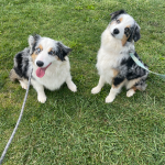 Daisy and Lily are both blue merle Australian Shepherds and are also very intelligent. Daisy is three years old and loves to play with toys and loves to eat lol. Lily is two years old and loves to play with toys also. We have only had these two beautiful girls for two months, so in the future we are expecting some blue merle Aussiedoodles out of both of them!
