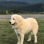 Macie is a Great Pyrenees, she is almost three years old, and she is the exact opposite of Dallas, she never meets a stranger. She is an attention stealer, and you cannot pet another dog if she is around. She has had three litters of puppies, and is a fabulous mother, especially considering her weight which is a little over 100 pounds. She is the sweetheart of the group, but her bark would make you think otherwise.