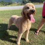 Max is an apricot Standard Poodle; he is about to be three years old and weighs about 65 pounds. He is AKC registered and has been genetically health tested. He was the first Poodle that we had ever had, and over the course of those three years he has fathered many puppies and been one of the best dogs a person could ask for. He is a sweet boy also, he and Macie always argue over the attention, until Max decides to jump up and hug you, so you must pet him!